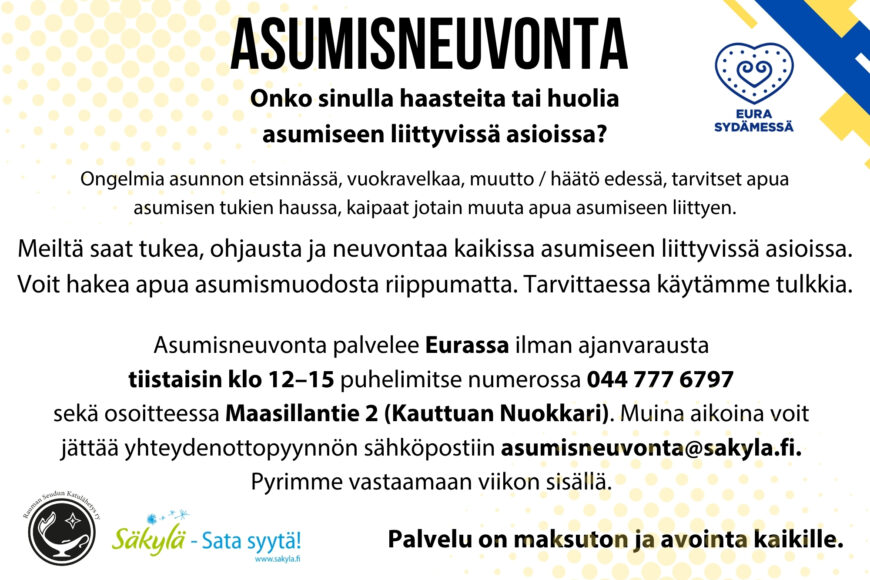 Eurassa asumisneuvontaa 28.4. alkaen.