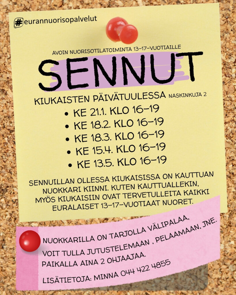 Eurassa toimii kaksi nuorisotilaa eli nuokkaria: Kauttuan nuokkari ja Hinnerjoen Nurtsi. Kauttuan nuokkarin toiminnasta vastaa nuoriso-ohjaajat. Nurtsilla nuorteniltojen toteutuksesta vastaa talotoimikunta ja paikalliset yhdistykset. Se on eräänlainen upea ihme Suomen kartalla! Lisäksi aiomme tänä keväänä pitää kiertäviä perjantainuokkareita ympäri Euraa!